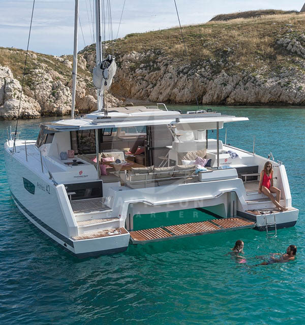 Este catamaran Fountaine Pajot 42 Astrea, fabricado en 2019, es un Lujoso catamarán de crucero. Con sus 13 metros de eslora y 7,20 metros de manga cumple a la perfección todas las exigencias para pasar unas vacaciones de inolvidables.