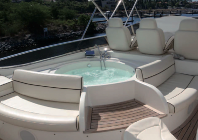 EQUIPAMIENTO ASTONDOA 95 – ALQUILER BARCOS IBIZA Piloto automático, Radar, Antena, Profundímetro, Plotter / GPS, VHF, Caja Fuerte en camarote principal, Equipo de música, Frigoríficos y un congelador, Potabilizadora, Generadores, Aire acondicionado, Calefacción, Lavadora / secadora, Luces de fondeo nocturno, Mesa de bañera, DVD – radio, para camarotes, Pasarela hidráulica, piso de teca, Sistema de alarma, Solárium en proa y puente alto, Teca en zona de proa de puente alto, Toldo bimini top, Tv satélite en salón y en camarotes principales, jacuzzi en baño principal y ducha hidromasaje, auxiliar con 6 plazas, grúa hidráulica
