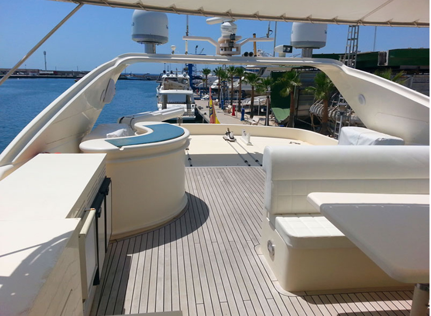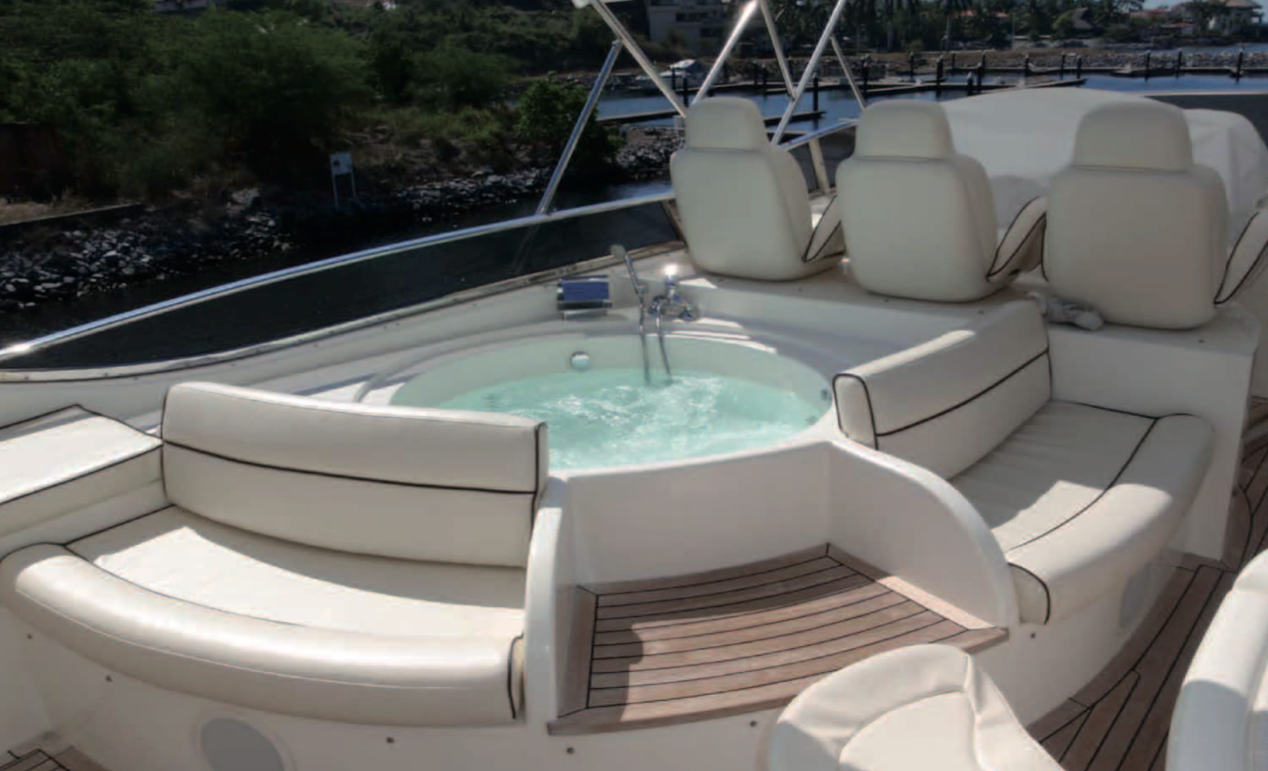 EQUIPAMIENTO ASTONDOA 95 – ALQUILER BARCOS IBIZA Piloto automático, Radar, Antena, Profundímetro, Plotter / GPS, VHF, Caja Fuerte en camarote principal, Equipo de música, Frigoríficos y un congelador, Potabilizadora, Generadores, Aire acondicionado, Calefacción, Lavadora / secadora, Luces de fondeo nocturno, Mesa de bañera, DVD – radio, para camarotes, Pasarela hidráulica, piso de teca, Sistema de alarma, Solárium en proa y puente alto, Teca en zona de proa de puente alto, Toldo bimini top, Tv satélite en salón y en camarotes principales, jacuzzi en baño principal y ducha hidromasaje, auxiliar con 6 plazas, grúa hidráulica