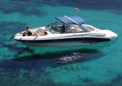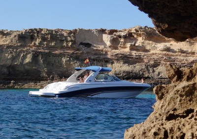 Este tipo de motoras son ideales para salidas de día, con o sin patrón, para recorrer rápidamente las islas de Ibiza y Formentera. Navegar por las mejores calas y los lugares a los que no podemos acceder a pie. En Papillon Charter las alquilamos normalmente para salidas de medio día o el día entero y nuestros clientes disfrutan con ellas de espectaculares atardeceres, calas de aguas cristalinas y de los mejores paisajes de la isla.