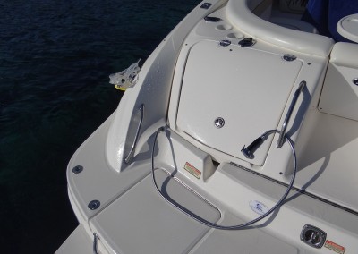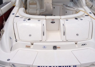 La mejor de la línea bow rider, con un montón de equipo adicional. Suficientemente amplia como para llevar 12 pasajeros a bordo. La plataforma de baño integrada con escalera de baño aumenta el espacio útil aún más. El barco está perfectamente equipado con bimini, molinete eléctrico, ducha en popa, WC vacuflush, sistema de sonido. Con una amplia manga de 3m y con la potencia de 2 motores Mercruiser 5.7 260 cv detrás de usted, este barco le llevará suave y cómodamente a través de cualquier condición de mar a encontrar.