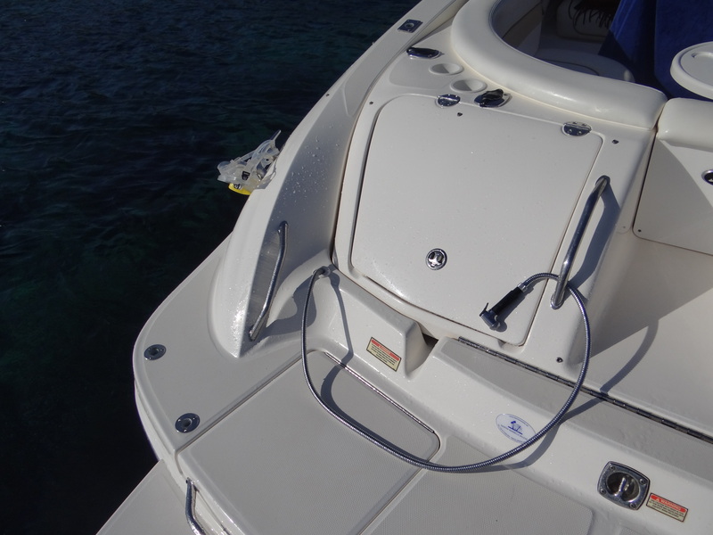 La mejor de la línea bow rider, con un montón de equipo adicional. Suficientemente amplia como para llevar 12 pasajeros a bordo. La plataforma de baño integrada con escalera de baño aumenta el espacio útil aún más. El barco está perfectamente equipado con bimini, molinete eléctrico, ducha en popa, WC vacuflush, sistema de sonido. Con una amplia manga de 3m y con la potencia de 2 motores Mercruiser 5.7 260 cv detrás de usted, este barco le llevará suave y cómodamente a través de cualquier condición de mar a encontrar.