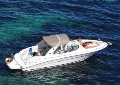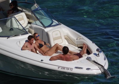Este tipo de motoras son ideales para salidas de día, con o sin patrón, para recorrer rápidamente las islas de Ibiza y Formentera. Navegar por las mejores calas y los lugares a los que no podemos acceder a pie. En Papillon Charter las alquilamos normalmente para salidas de medio día o el día entero y nuestros clientes disfrutan con ellas de espectaculares atardeceres, calas de aguas cristalinas y de los mejores paisajes de la isla.