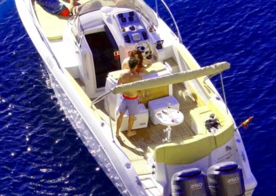 Este tipo de motoras son ideales para salidas de día, con o sin patrón, para recorrer rápidamente las islas de Ibiza y Formentera. Navegar por las mejores calas y los lugares a los que no podemos acceder a pie. En Papillon Charter las alquilamos normalmente para salidas de medio día o el día entero y nuestros clientes disfrutan con ellas de espectaculares atardeceres, calas de aguas cristalinas y de los mejores paisajes de la isla.