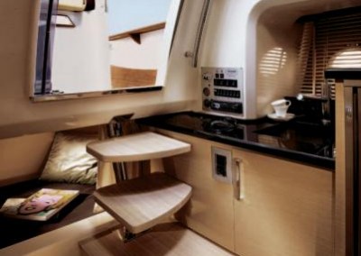 Este fantástico barco tiene una amplia distribución, con un gran solarium a proa. Cuenta con dos potentes motores de 250CV Yamaha fuera de borda con controles electrónicos, un buen sistema de sonido con altavoces situados a lo largo del barco. Cuenta con un confortable camarote, con cocina, baño y una cama supletoria, por lo que puede alojar hasta 3 personas a bordo. TV y antena que harán que su estancia sea más agradable. Agua caliente, nevera en camarote y la cubierta. Si te apetece navegar por las aguas de Ibiza y Formentera, en una motora como esta, llámanos y te daremos toda la información que necesitas!