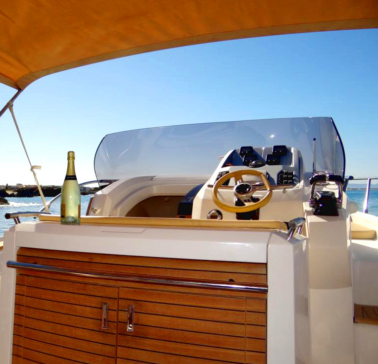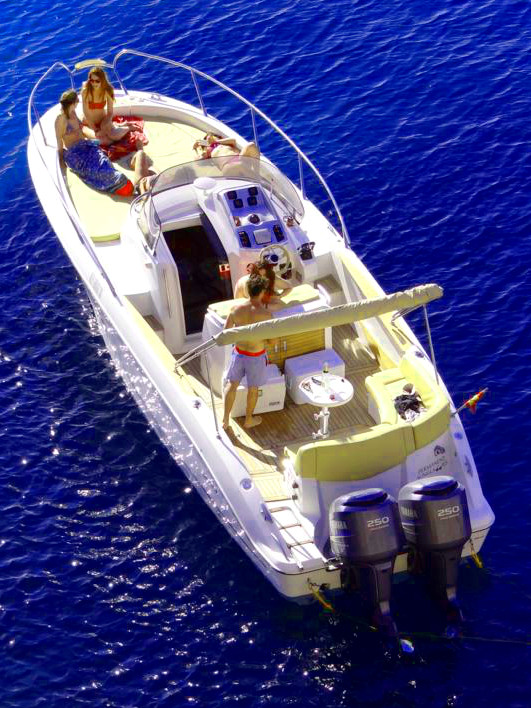 Este tipo de motoras son ideales para salidas de día, con o sin patrón, para recorrer rápidamente las islas de Ibiza y Formentera. Navegar por las mejores calas y los lugares a los que no podemos acceder a pie. En Papillon Charter las alquilamos normalmente para salidas de medio día o el día entero y nuestros clientes disfrutan con ellas de espectaculares atardeceres, calas de aguas cristalinas y de los mejores paisajes de la isla.