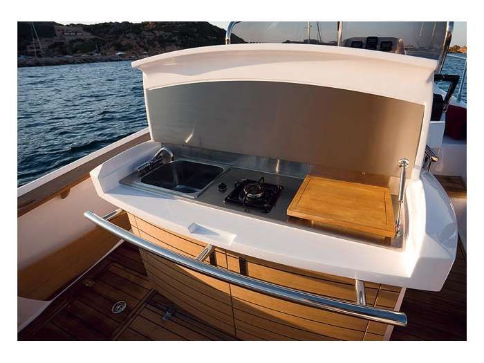 Este fantástico barco tiene una amplia distribución, con un gran solarium a proa. Cuenta con dos potentes motores de 250CV Yamaha fuera de borda con controles electrónicos, un buen sistema de sonido con altavoces situados a lo largo del barco. Cuenta con un confortable camarote, con cocina, baño y una cama supletoria, por lo que puede alojar hasta 3 personas a bordo. TV y antena que harán que su estancia sea más agradable. Agua caliente, nevera en camarote y la cubierta. Si te apetece navegar por las aguas de Ibiza y Formentera, en una motora como esta, llámanos y te daremos toda la información que necesitas!